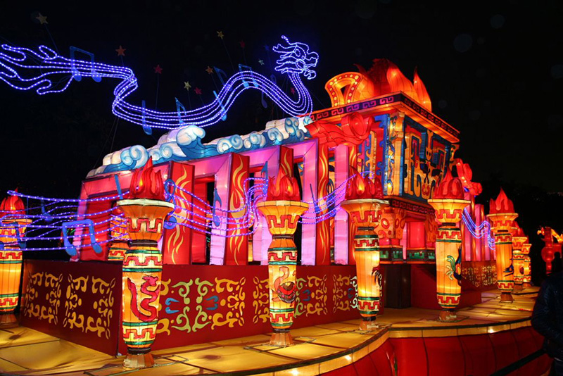 元宵節(jié)花燈種類甚多,或是仿照事物的形象編制的形象燈,如龍燈、虎燈、兔燈等等,或是根據(jù)民間故事編制而成的活動燈,如牛郎織女、二十四孝等等,表現(xiàn)忠孝節(jié)義的民族精神。各種花燈制作工巧,一展工匠的智慧和技能。